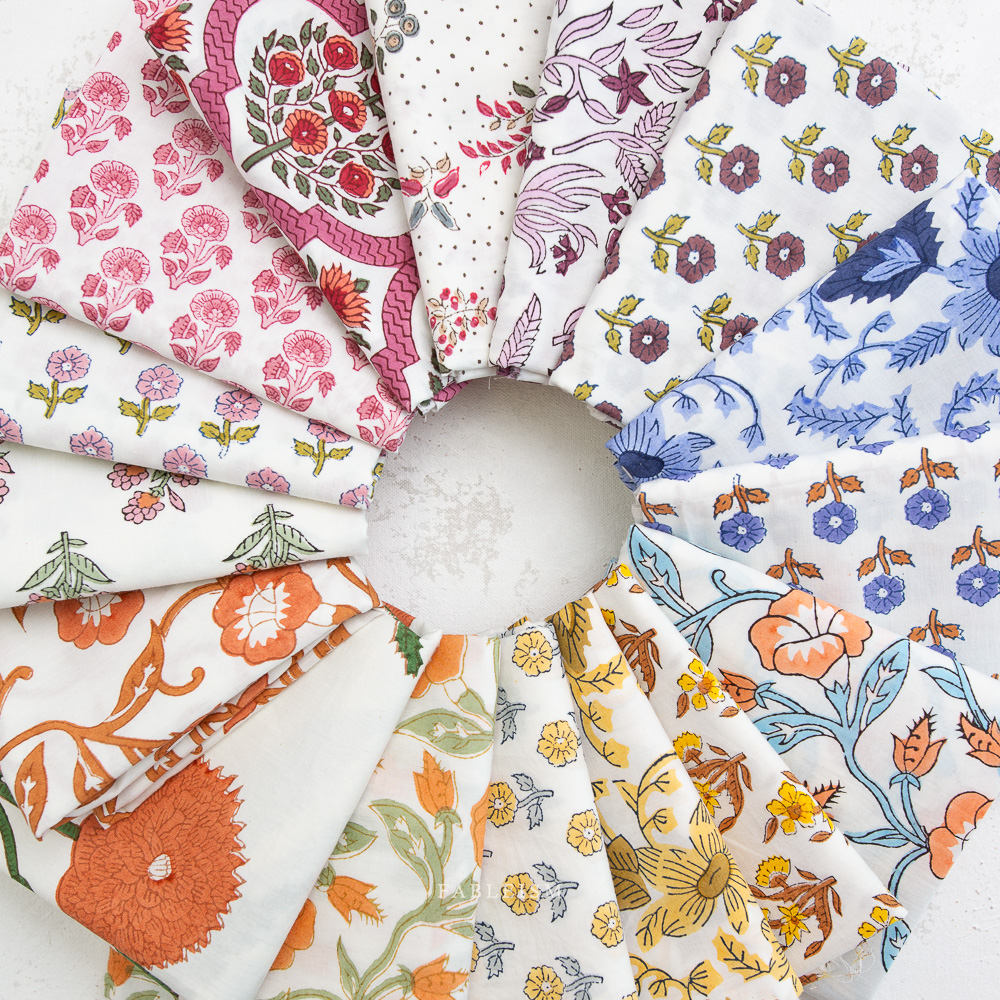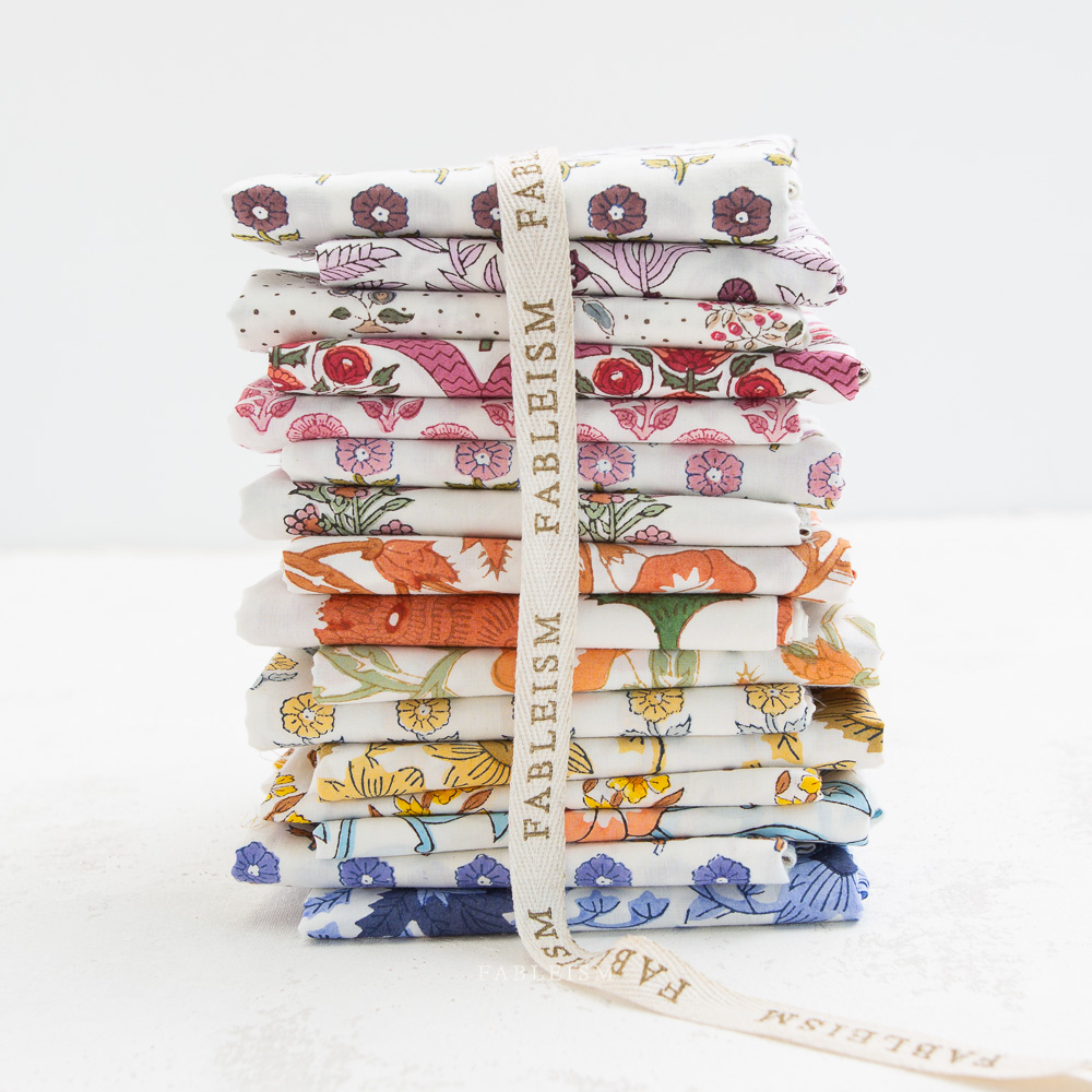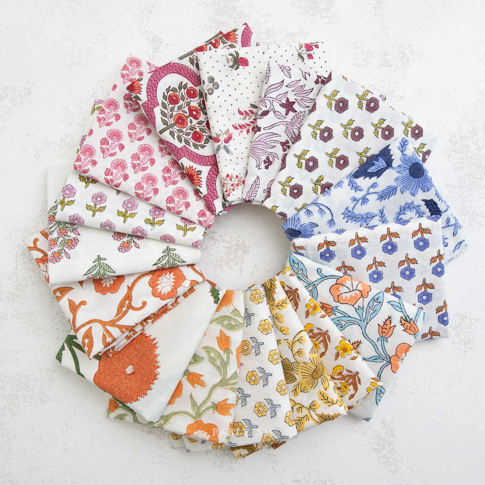 16 Piece Fat Quarter Bundle Of Indian Block Prints Cottage By Fableism (Avail Apr)