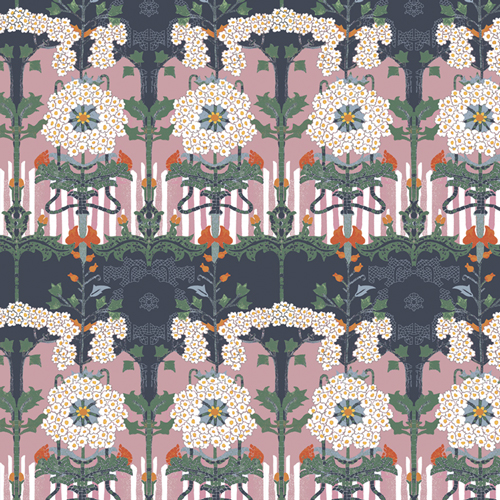 flowing Art Nouveau motifs, mosaic-like patterns, and bold jewel tones, this collection takes