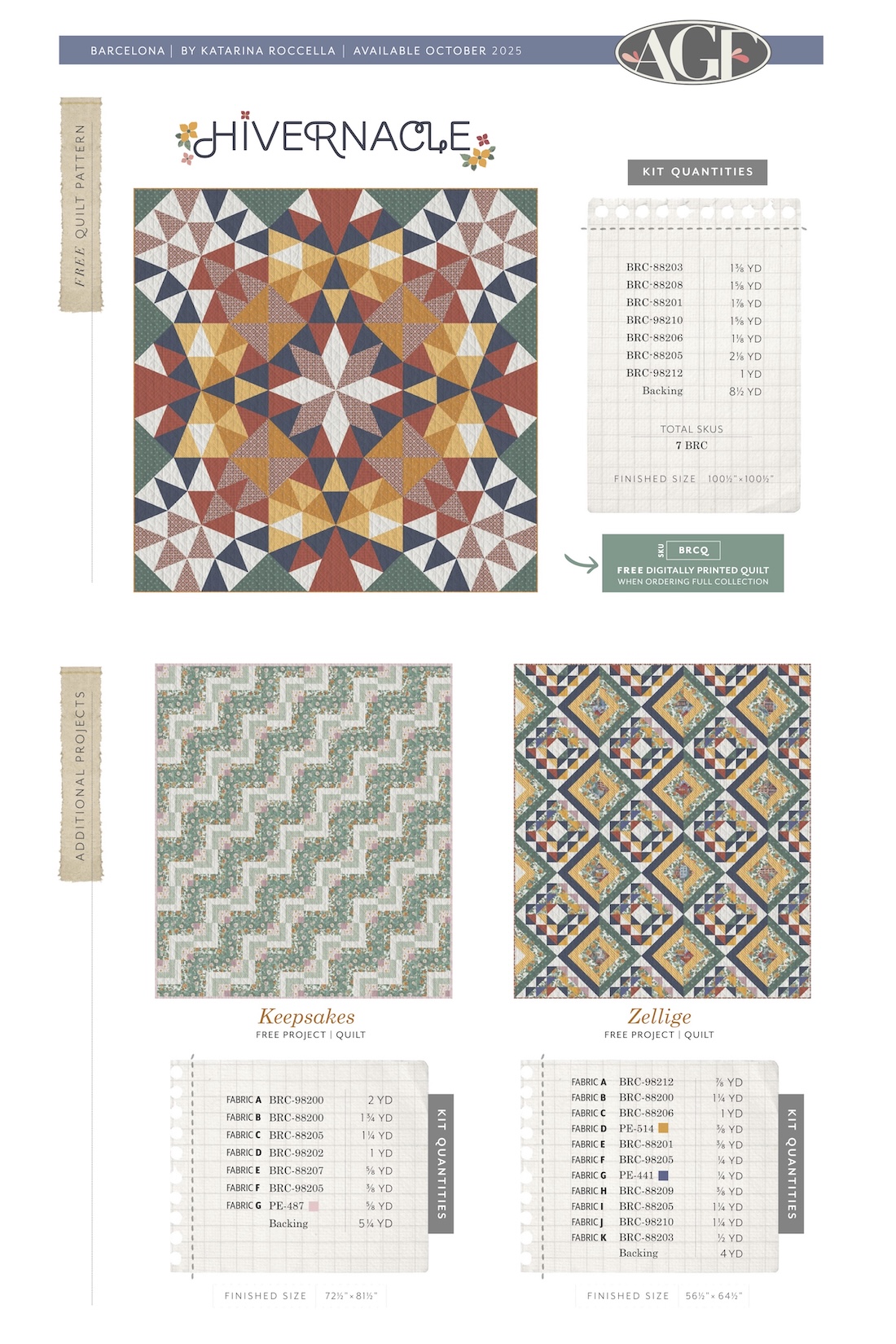 FQ Fabric Wonders 16 Fat Quarters from Barcelona by Katarina Roccella for AGF (Avail Jan)