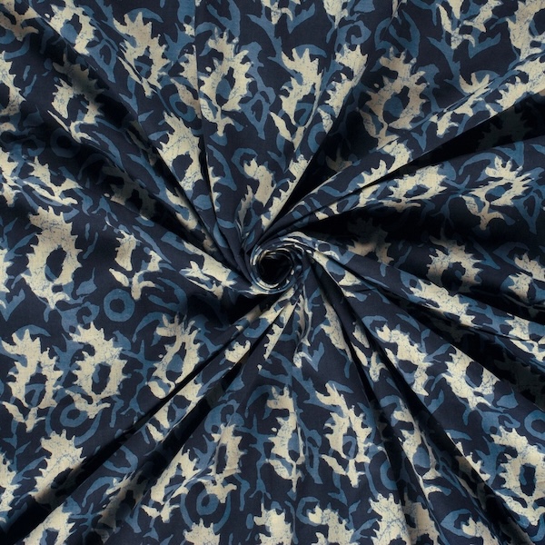 Indigo Abstract Indian Block Print In Cotton By Modelo Fabrics