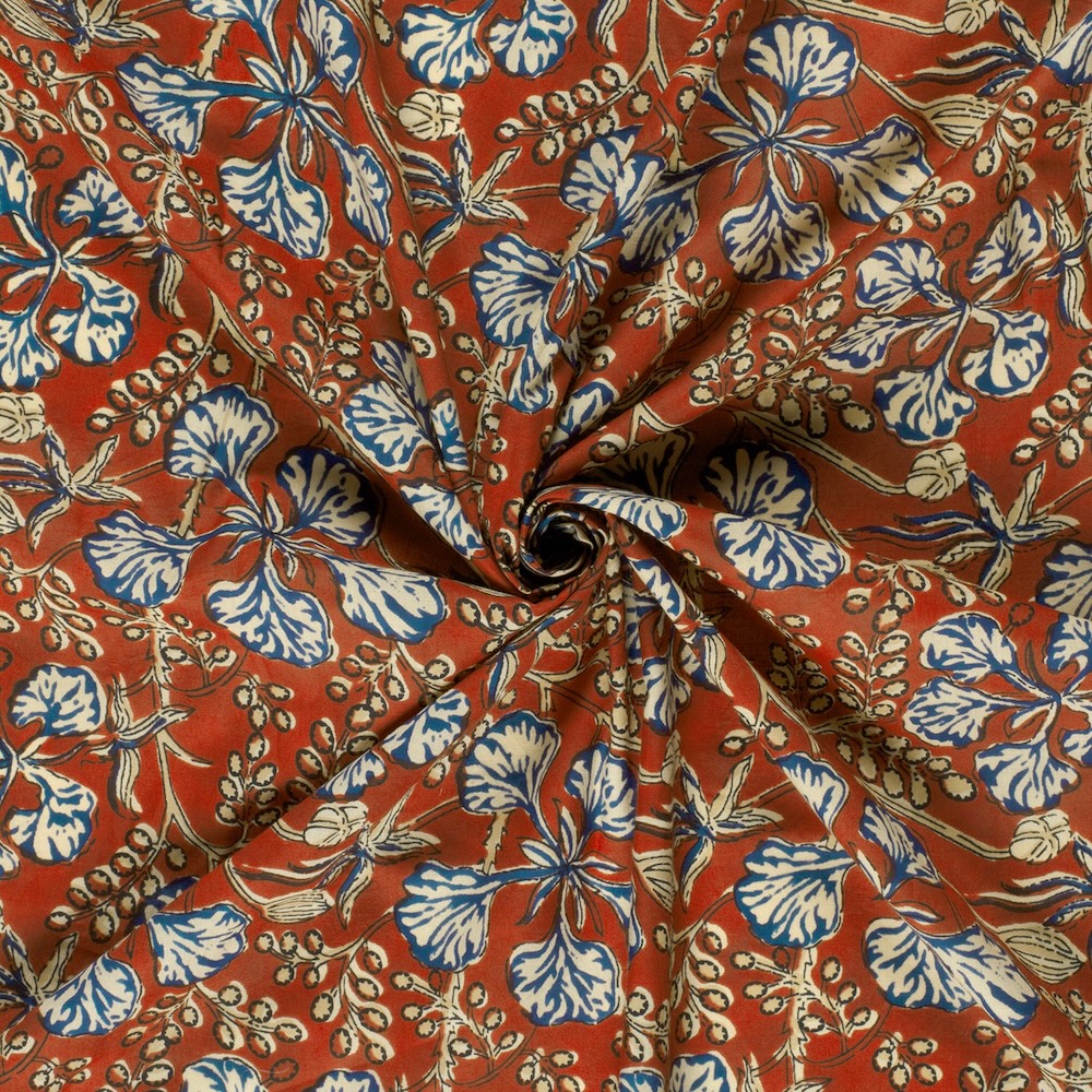 Beige And Blue On Copper Leaves Indian Block Print In Cotton By Modelo Fabrics
