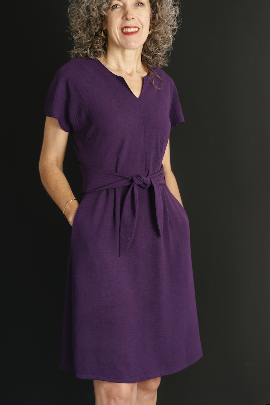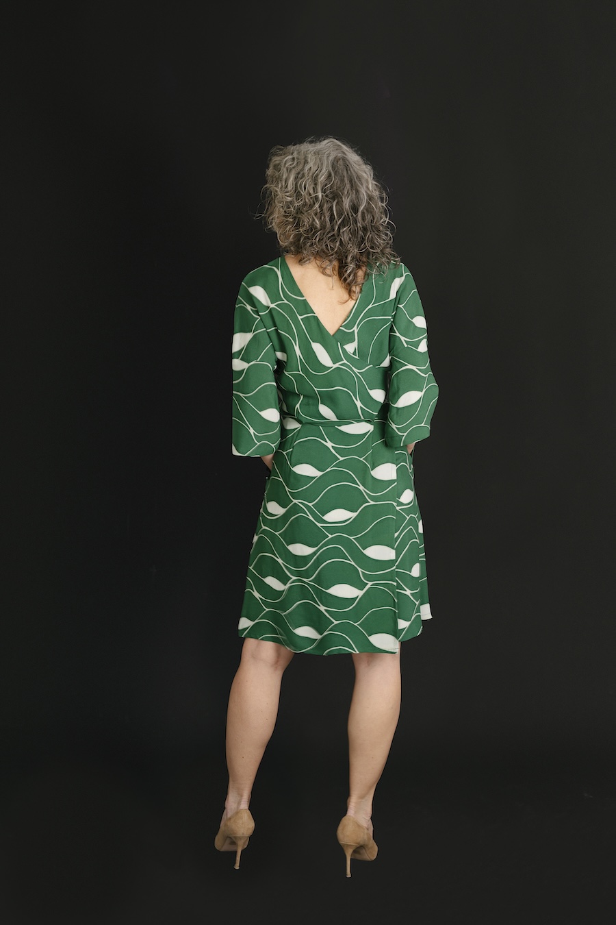 1. #About#An easy-to-sew and easy-to-wear wrap dress with a twist: the wrap is in the back instead of the front! Both views feature ties at the front waist, on-seam pockets, a bias-cut top for beautiful drape (top can also be cut on grain, if desired), a notch at the front neck, and a V-neck at the back. View A has cut-on sleeves and View B includes bracelet sleeves. With a slightly blousey bodice and a forgiving fit thanks to the pleats and adjustable waist, you’ll get a great fit with this style. The pattern includes cup sizes.