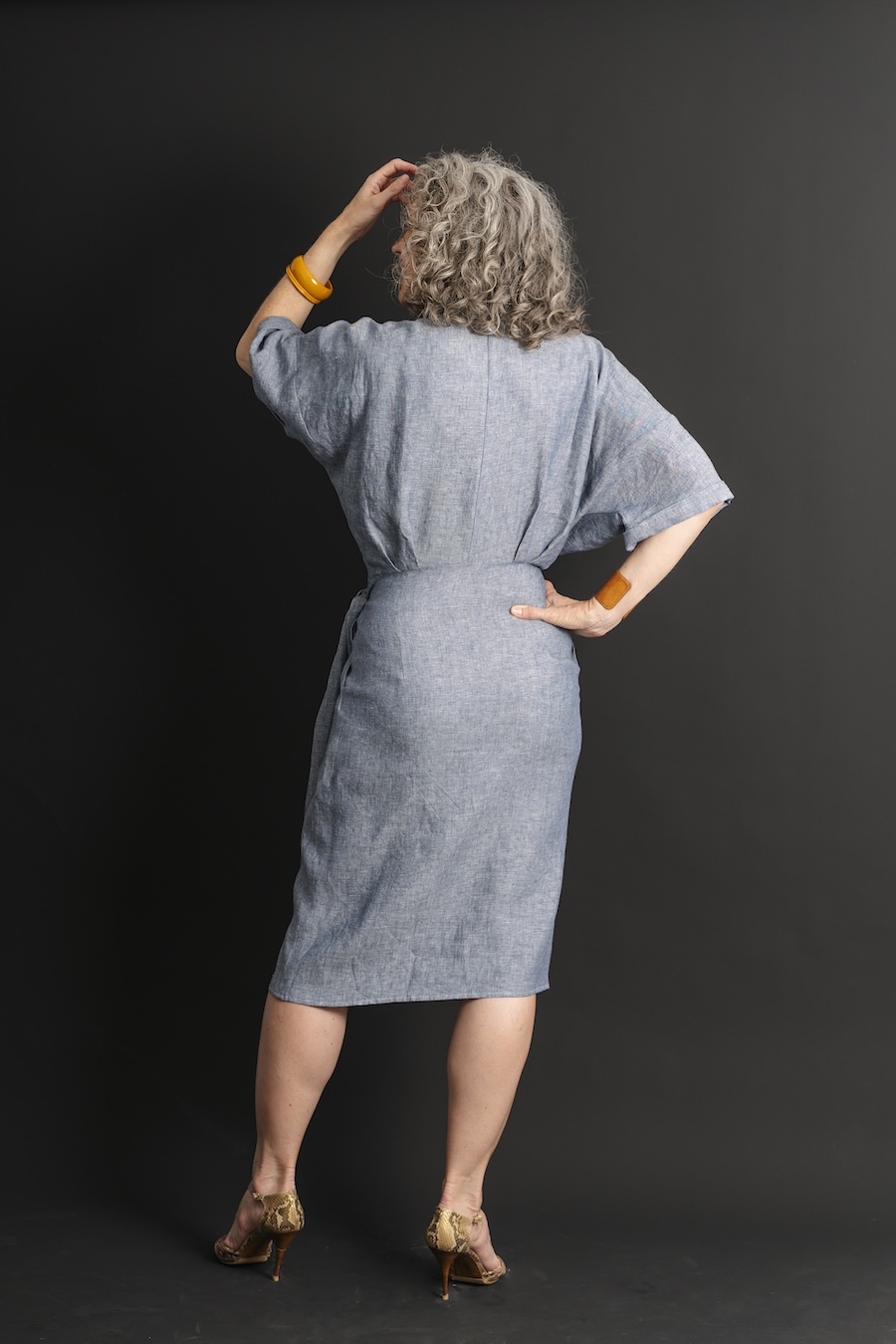 This pattern provides an interesting twist on the traditional wrap dress. It includes a sarong-style skirt, billowy sleeves, and a blousey top that’s a statement piece. You can also choose the short-sleeved version with cuffed sleeves. Both views have side pockets, a neck facing, and a forgiving fit that’s enhanced by pleats and darts. The neckline and skirt ties are especially secure on this dress, which means you can enjoy the ease of a wrap dress without common exposure worries.