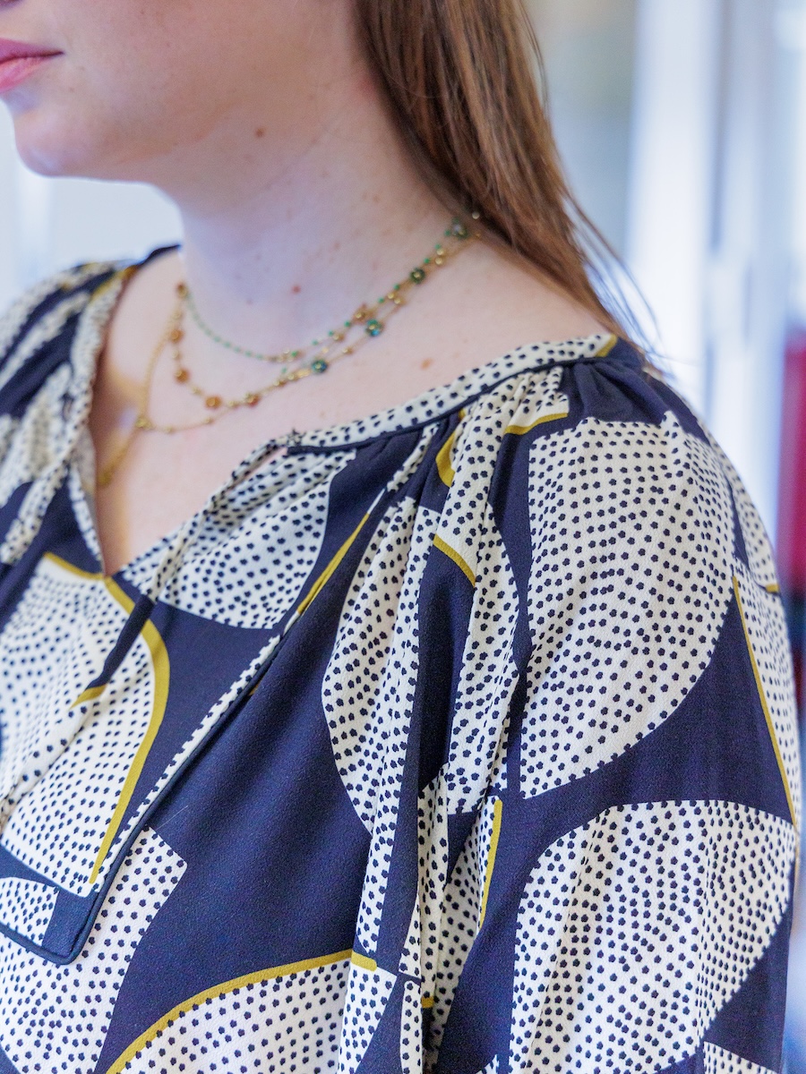 Recommended fabrics are medium-weight materials such as cotton, linen, or viscose, which provide the necessary drape and comfort for the garment.