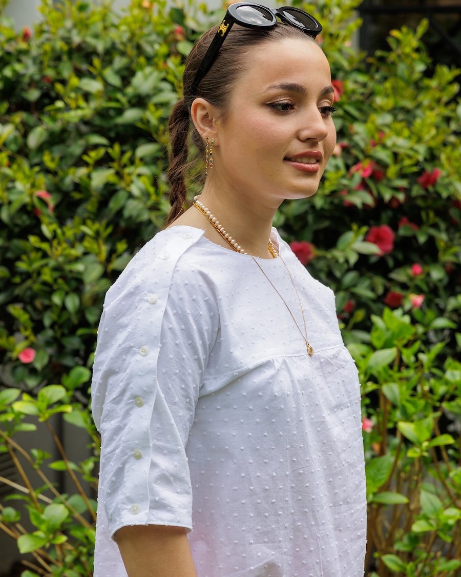 The Eudoxie Tunic Dress is a relaxed, pull-on style designed for comfort and ease. Featuring a loose, tunic-style silhouette, it is ideal for everyday wear and lends itself to both casual and stylish interpretations.