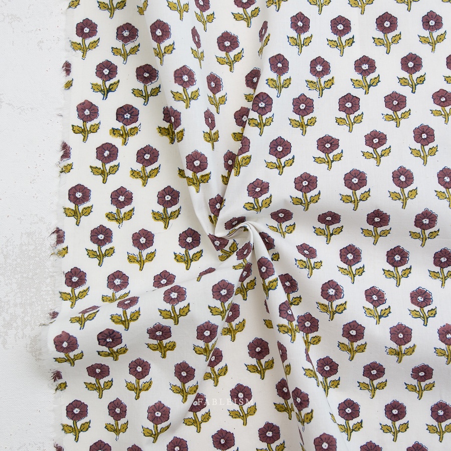 Cottage florals are available in beautiful colours on cream backgrounds for a low volume look. Printed on a slightly heavier base cloth than normal Indian block prints makes them perfectly suited to patchwork.