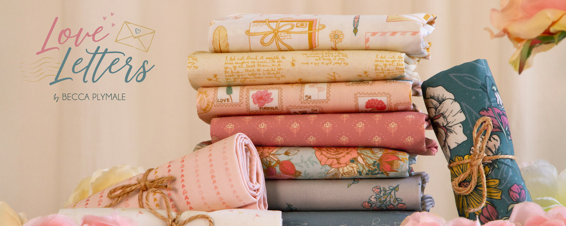 Sew lasting love with 'Love Letters' by Becca Plymale. Featuring enchanting romance fabrics in soft blush, creams, teals, and gold. This collection is inspired by resilience and connection, capturing enduring strength across distances.