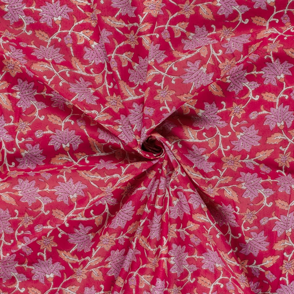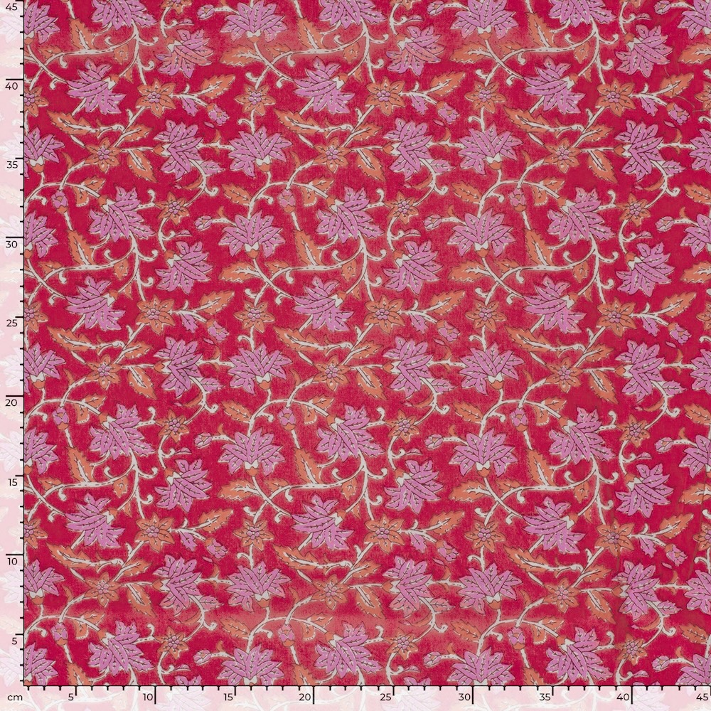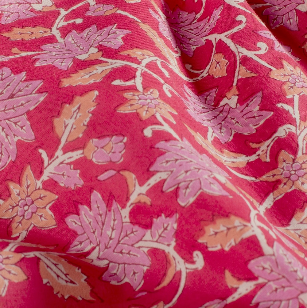 Mauve On Pink Floral Indian Block Print In Cotton By Modelo Fabrics
