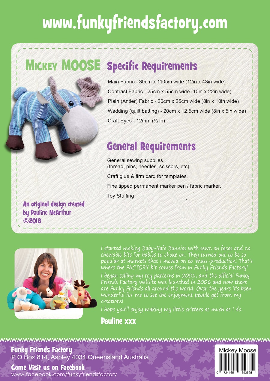 Mitch the Moose is a fun, characterful soft toy with big antlers, a chunky body and a friendly face. He looks fantastic made up in all kinds of fabrics — from bold prints to natural tones — and his large antlers give him plenty of personality. A great project for creating a woodland-themed companion or a festive moose friend.