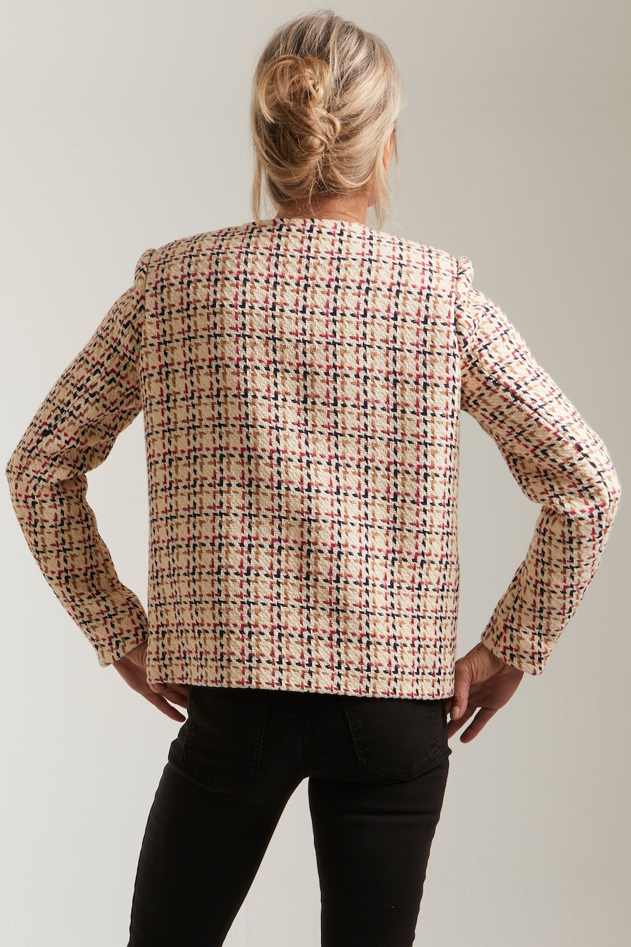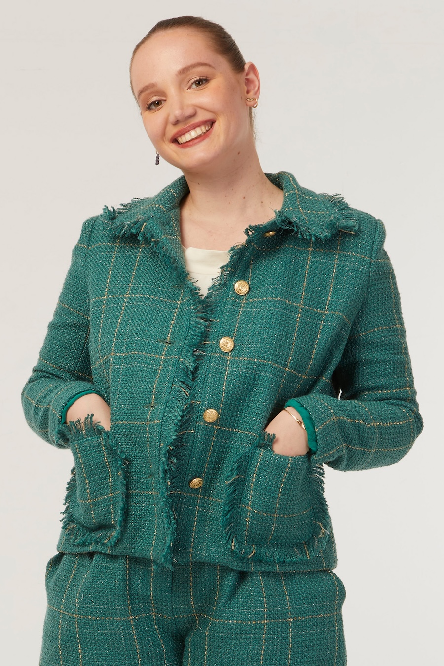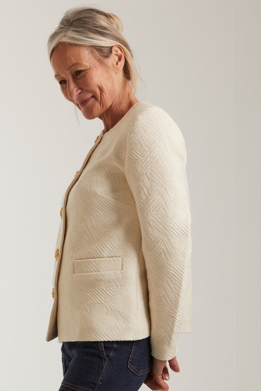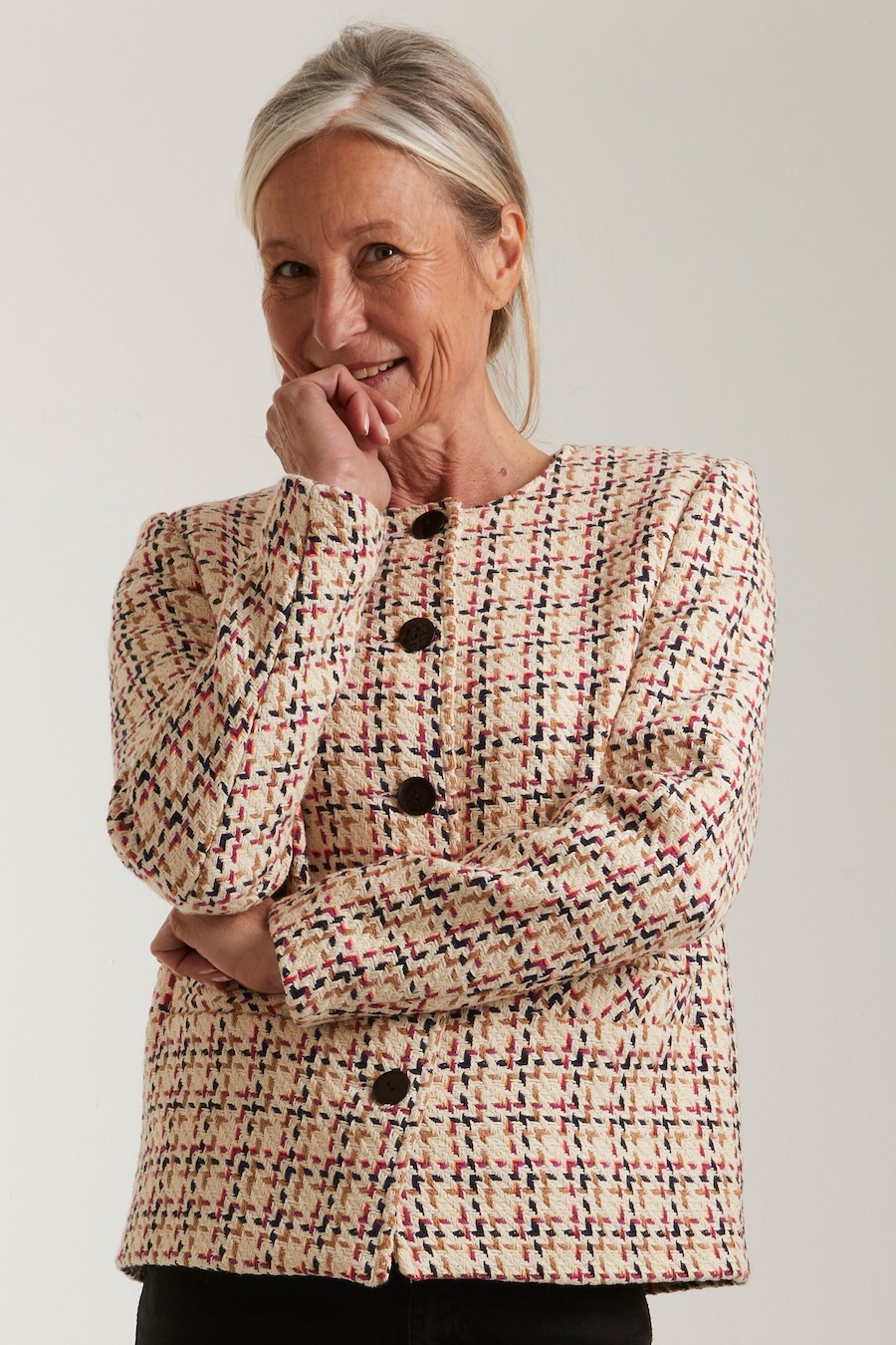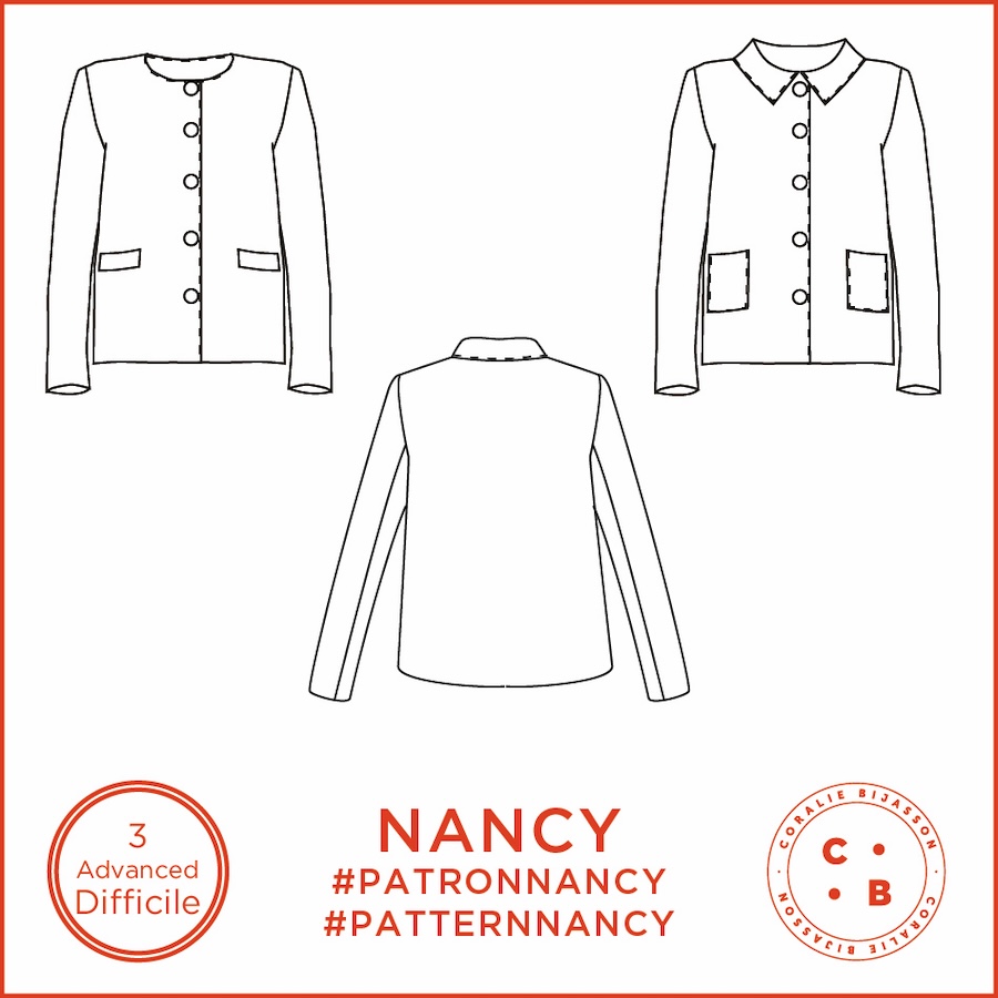 The Nancy Jacket by Coralie Bijasson is a chic, boxy-style jacket that offers versatility through its multiple design options. Featuring a straight cut, it can be customized with either a round neckline or a classic collar, and includes options for patch pockets or peasant-style pockets. This advanced-level pattern allows for creative expression while maintaining a timeless silhouette.