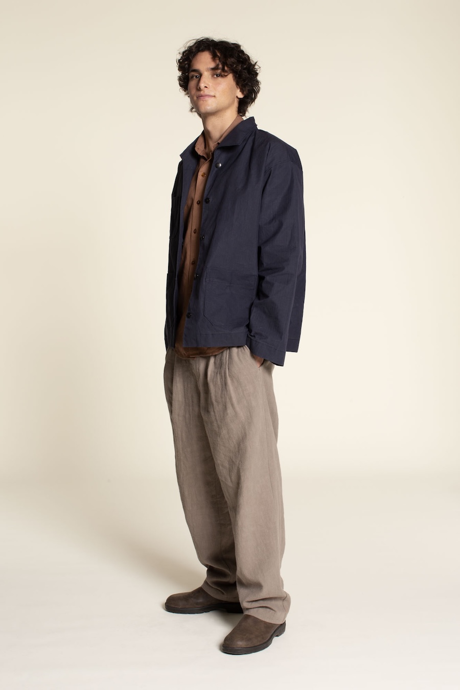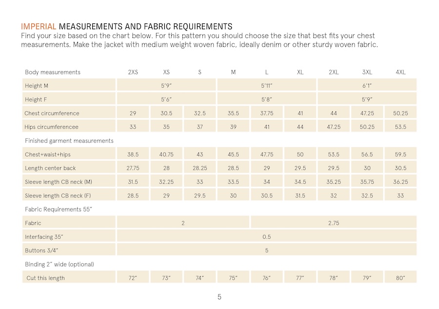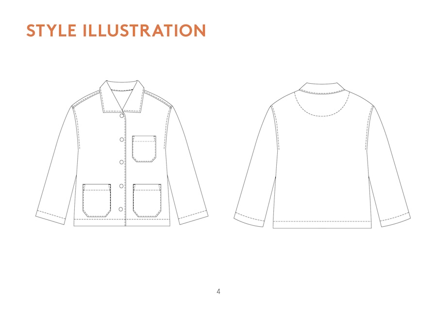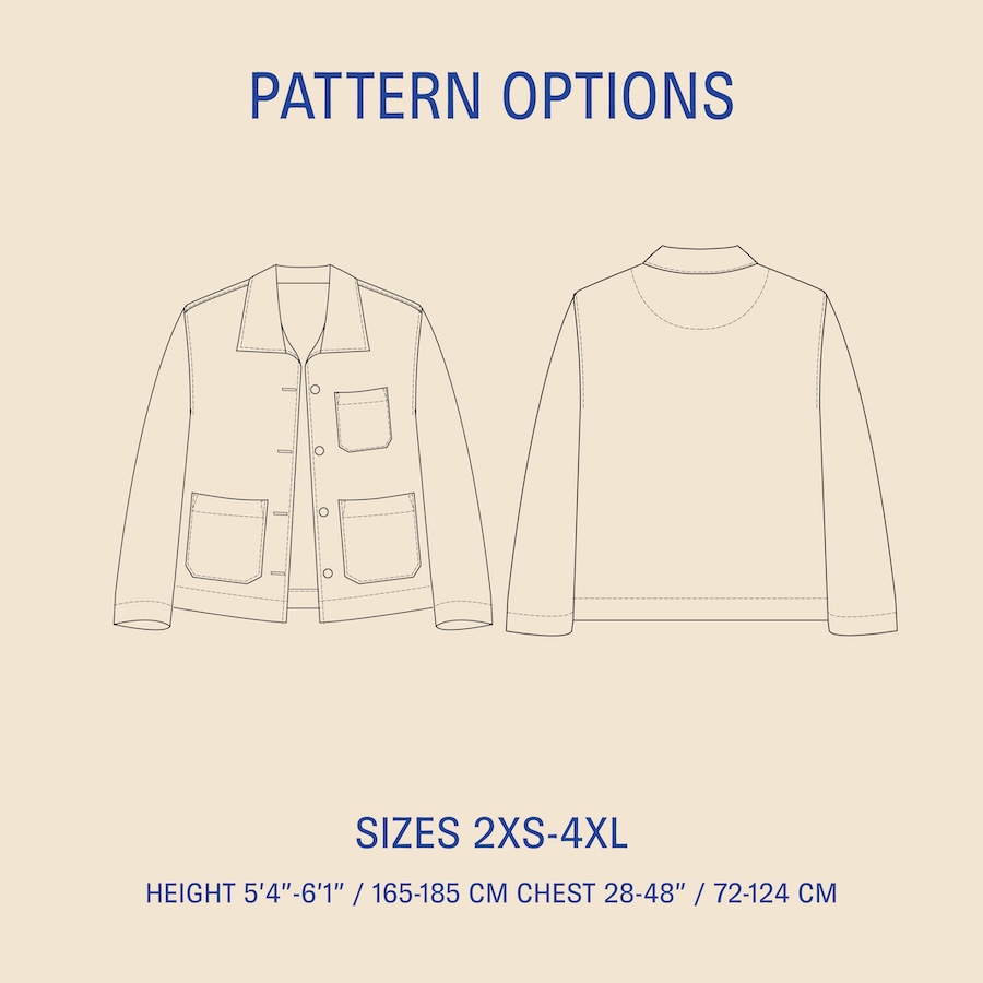 1. #About#This Jacket features a generous fit with oversized and unstructured details, including dropped shoulders and expansive patch pockets. The simple yet stylish design can be completed quickly with medium-weight fabrics such as denim or canvas. The pattern is unisex, with sleeve length for both males and females and lines for shortening and lengthening.