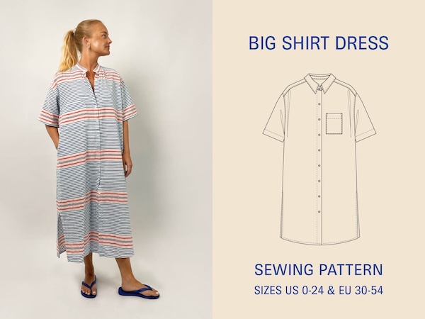 | | (Code: WBMP059) The Big Shirt Sewing Pattern offers a versatile design perfect as a dress or shirt. It features a collar with a stand dropped shoulders and voluminous sleeves with gathered cuffs. The front includes a placket with buttons side seam pockets and a yoke with gathers for added detail.