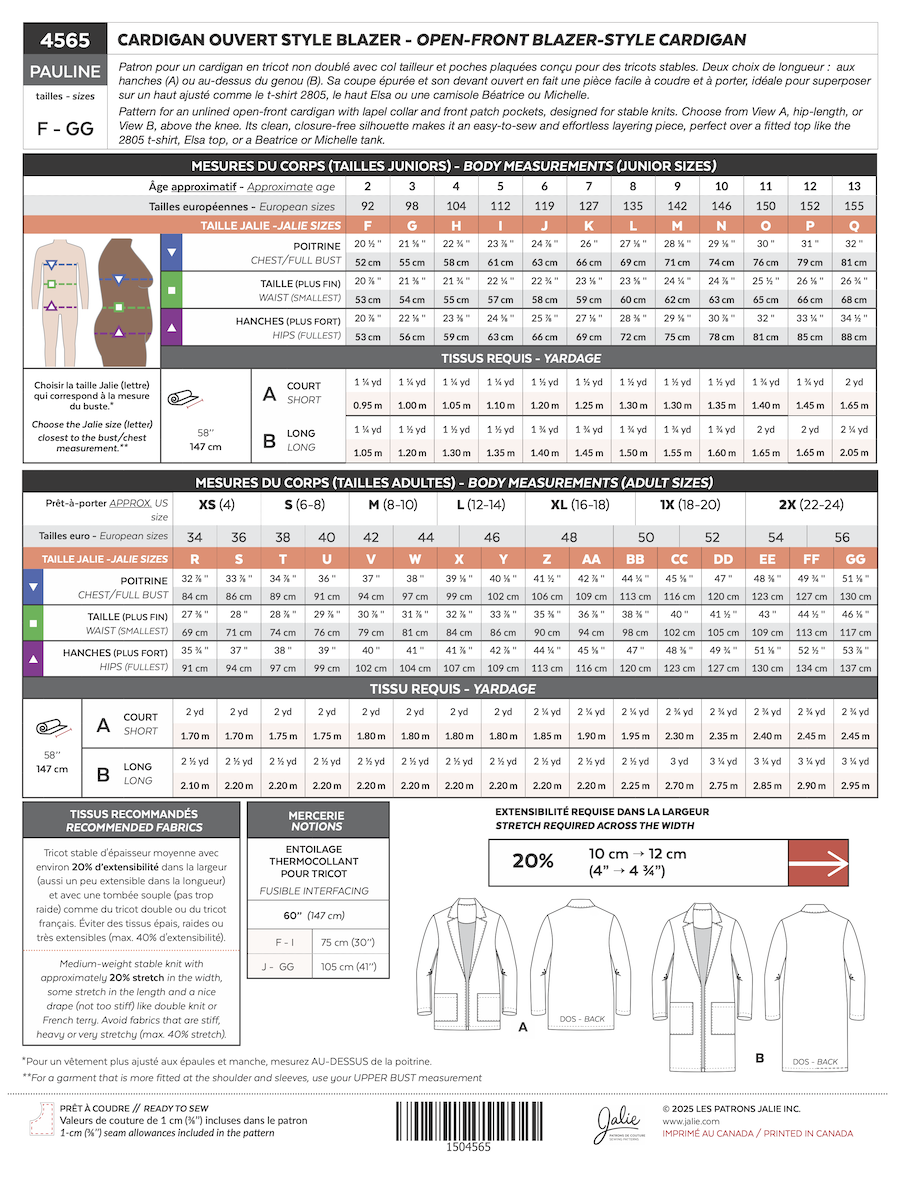 Pauline Open Fronted Blazer-Style Cardigan Pattern By Jalie