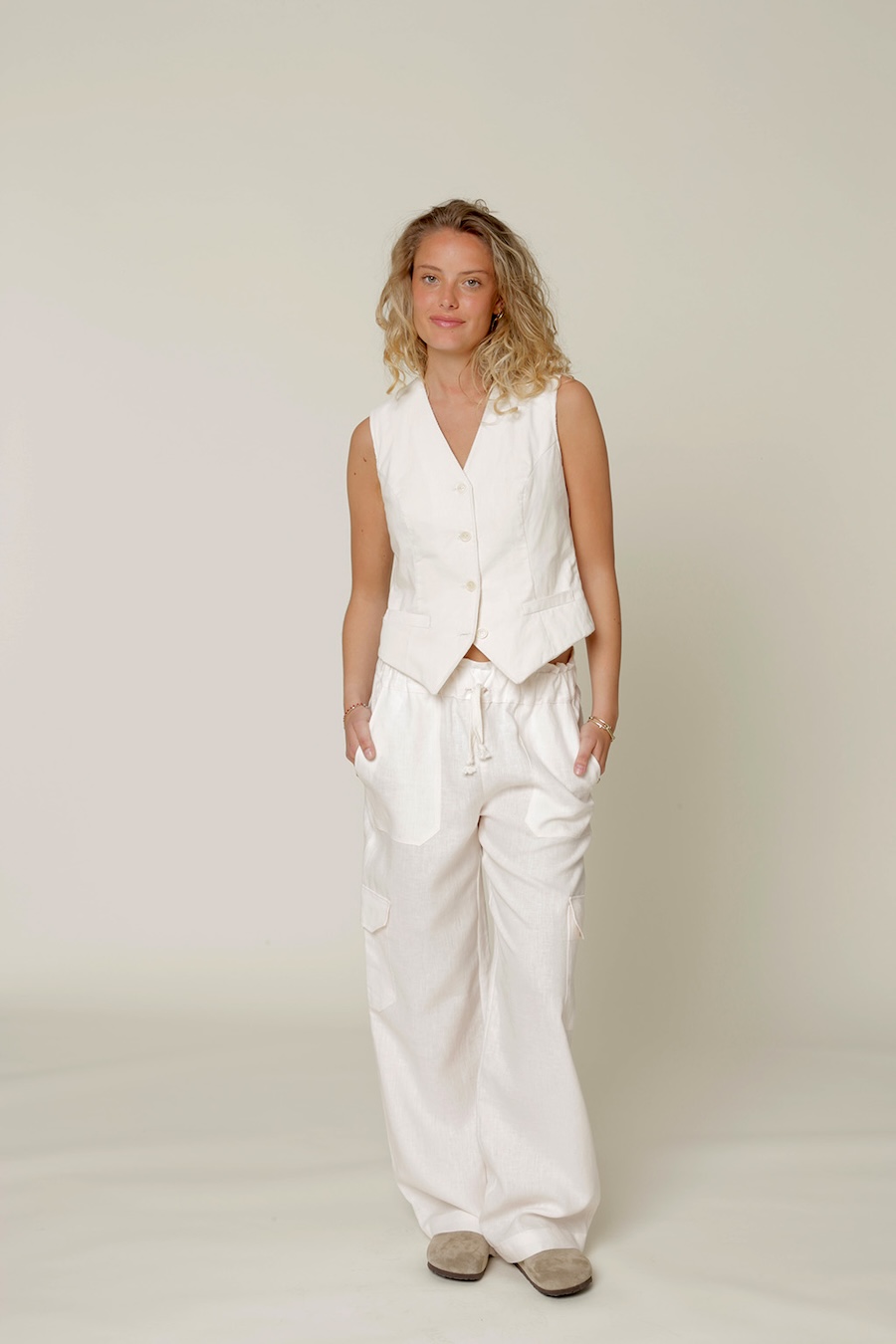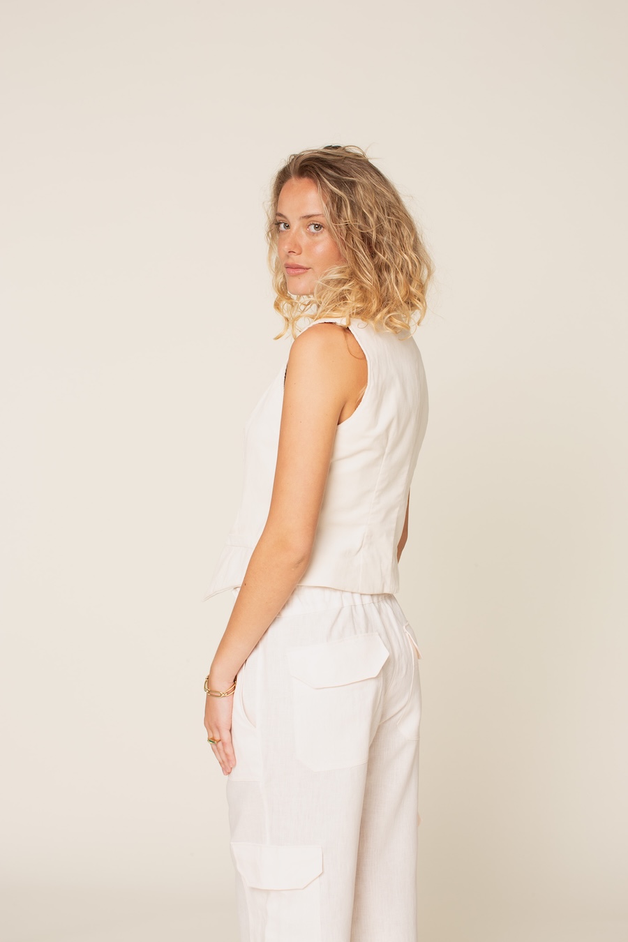 1. #About#Pika Vest is a perfect accessory for your wardrobe. Wear it over shirts, T-shirts, or alone as a top. The front hem is pointed and slightly longer than the back, with decorative (non-functional) welts, princess seams, back darts, and a shaped back seam. The inside has lining and facings. Make the Pika vest with woven fabric.The model is 172cm tall and wearing a vest in size 8/38. Flip through the images to see measurements and fabric requirements.