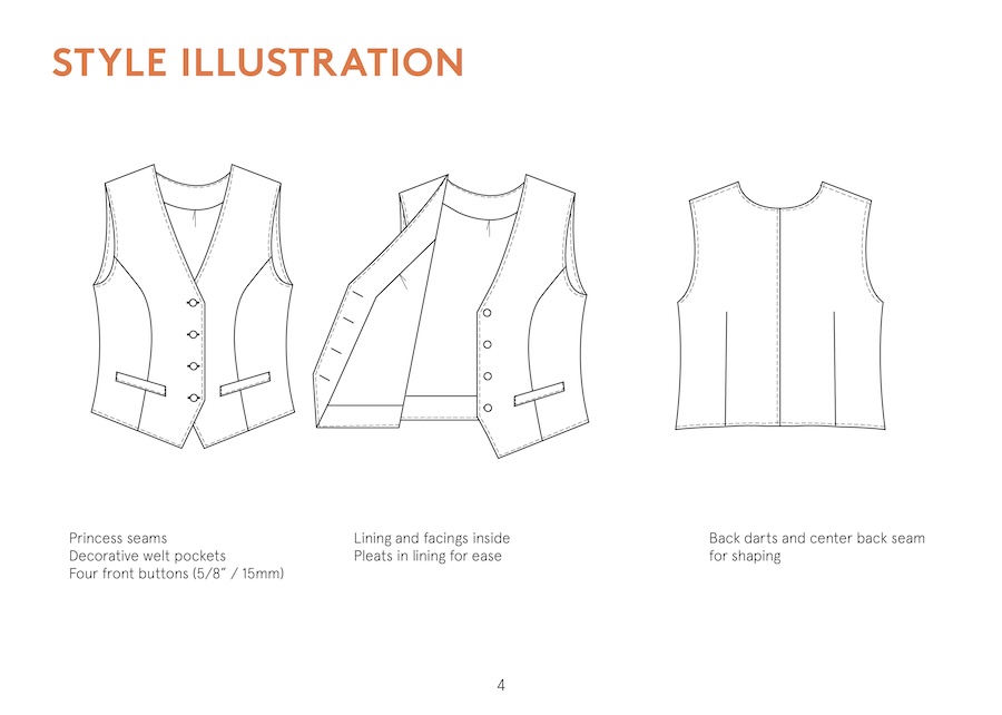 2. #Skill Level#The sewing project has step-by-step illustrated instructions and a video tutorial on YouTube. The Vest sewing pattern is straightforward. You will sew buttonholes and buttons, and if you follow the directions step by step, you will make a beautiful Pika Vest.