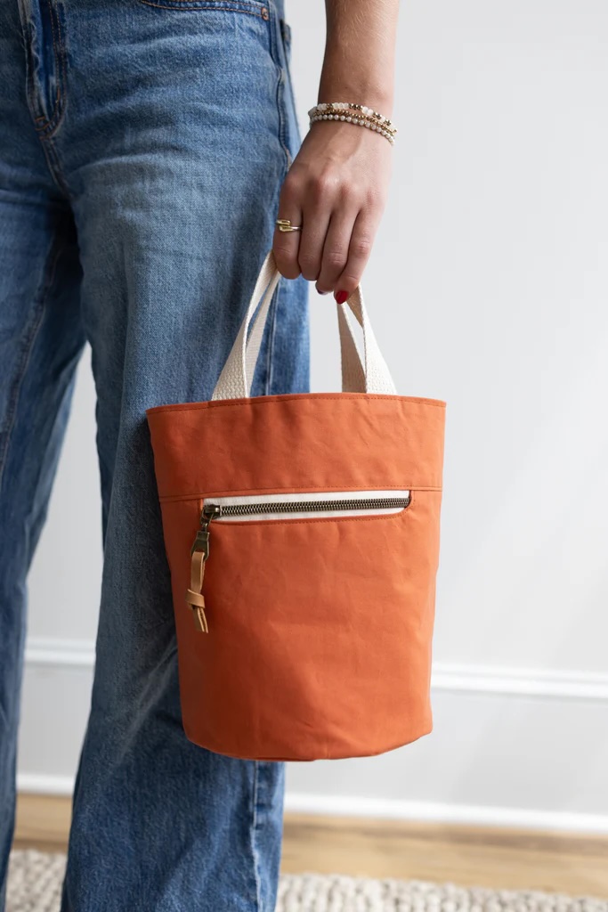 Recommended for the exterior: mid-weight canvas (6–8 oz.), dry oilskin, waxed canvas/twill, or vinyl. For the lining: quilting cotton or waterproof canvas.