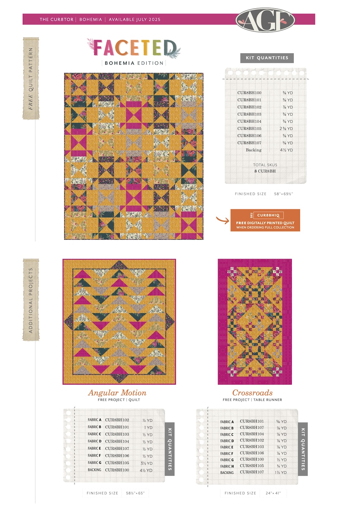 FQ Fabric Wonders 8 Fat Quarters from The Cur8tor Bohemia by AGF Studio for AGF (Avail Dec)