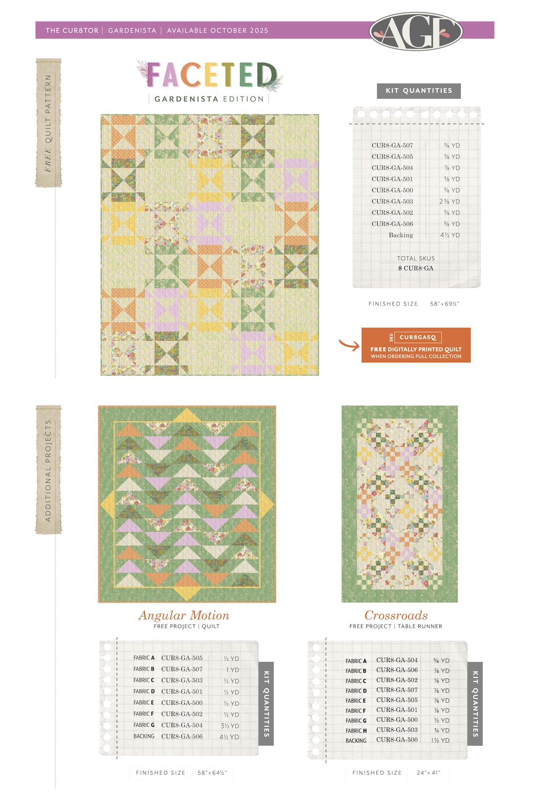 FQ Fabric Wonders 8 Fat Quarters from The Cur8tor Gardenista by AGF Studio for AGF (Avail Dec)