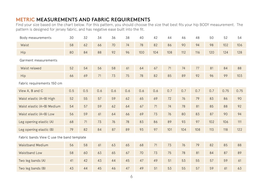 2. #Fabric & Notions#Choose a single jersey with stretch. The thickness of the material will affect the final fit. Size down with thinner material. Finish the edges with either elastic lace, FOE or fabric bands.