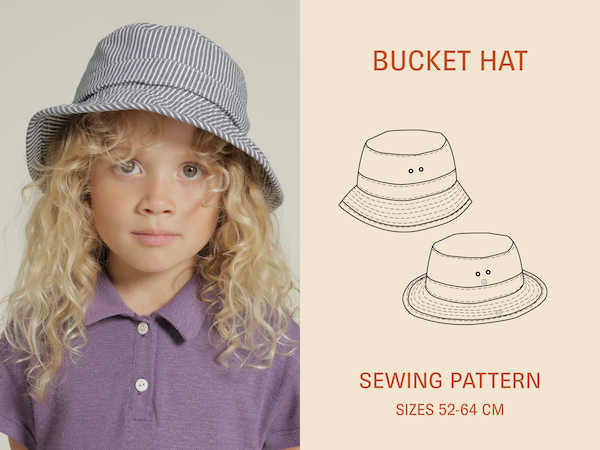 The pattern is also compatible with kids' sizing with head circumference from 20,5-25.25" / 52-64 cm. Use canvas, denim, or other medium-weight woven fabric. | | |