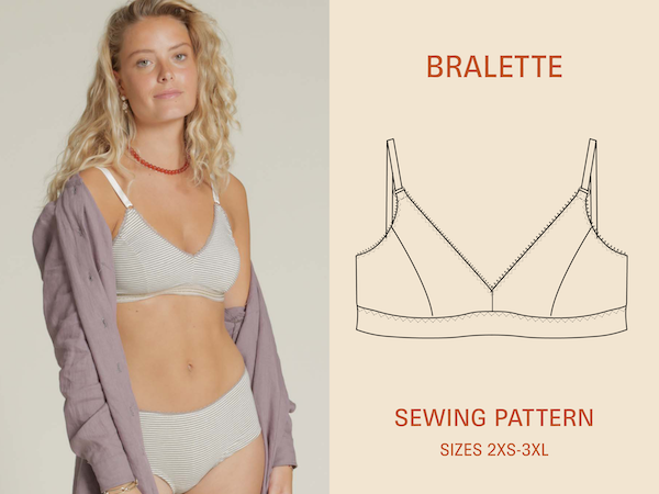 | | (Code: WBMP029) WBM Bralette sewing pattern is a fully lined Softline bralette with adjustable straps and a two-part cup, and the underbust is supported by a wide elastic band or a fabric band if you prefer.
