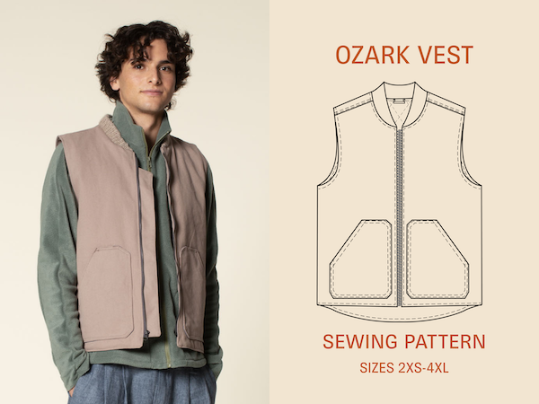 The Vest has lining and facings along all the edges, back darts, and a shaped back seam. The front patch pockets give the Vest an old-school vibe. Use canvas, denim, linen, wool, or corduroy for the vest sewing pattern. | | |