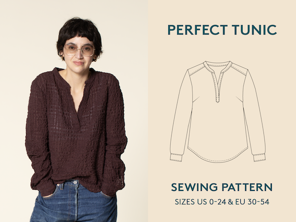 The tunic is designed with bust darts, a placket, and a narrow collar. The Perfect tunic has two lengths and optional yoke with a back pleat. The sleeve is either straight with a sleeve tab or finished with cuff and slit. The pattern is designed for woven fabric. US 0-24 & EU 30-54. | | |