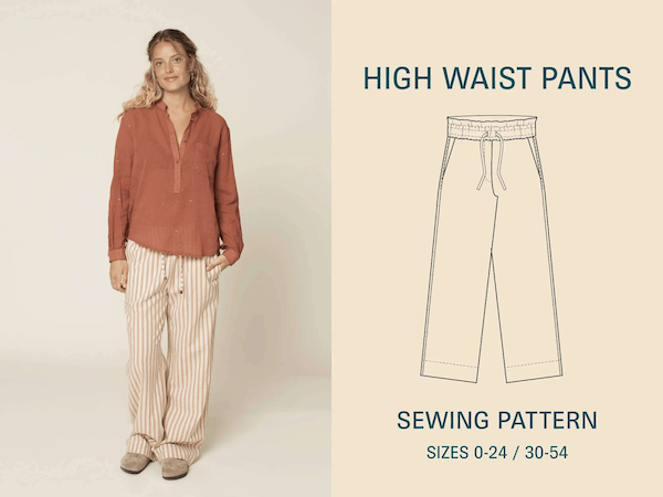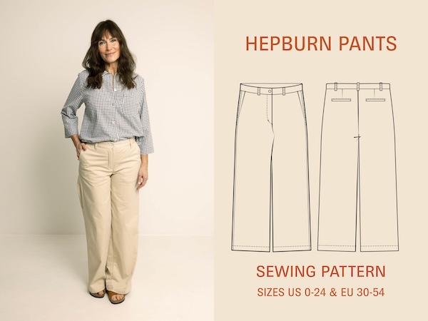 | | (Code: WBMP006) The Hepburn pant sewing pattern is a high waisted pair of pants with back welt pockets, front fly with zipper, side pockets, and waistband with five belt loops.