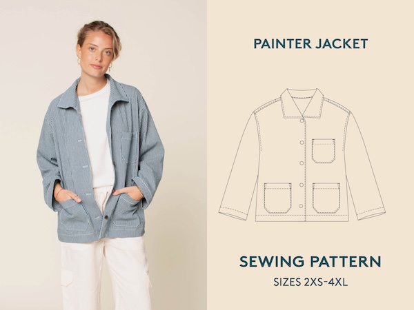 | | (Code: WBMP058) Artist Jacket Sewing Pattern is a relaxed functional workwear-inspired piece with dropped shoulders a front button placket large patch pockets and a minimalist banded collar.