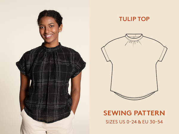 | | (Code: WBMP009) The Summer Tulip top sewing pattern has dropped shoulders with cuffed sleeve openings.