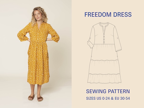 | | (Code: WBMP031) The Freedom Dress sewing pattern is a loose, flowy, tiered dress with statement sleeves and a skirt with two or three tiers.