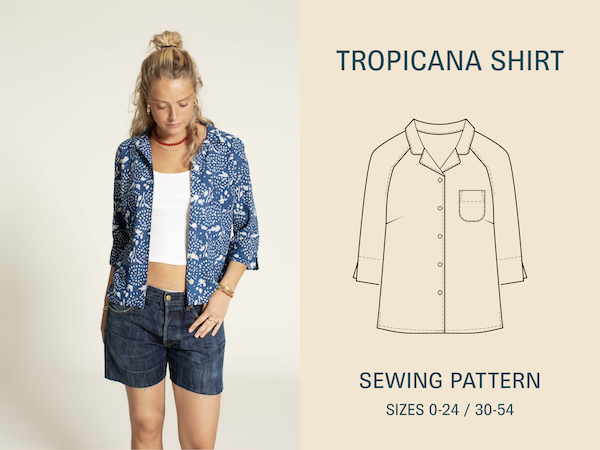 | | (Code: WBMP030) Tropicana Shirt sewing pattern is a casual button-up short-sleeved shirt with a convertible collar.