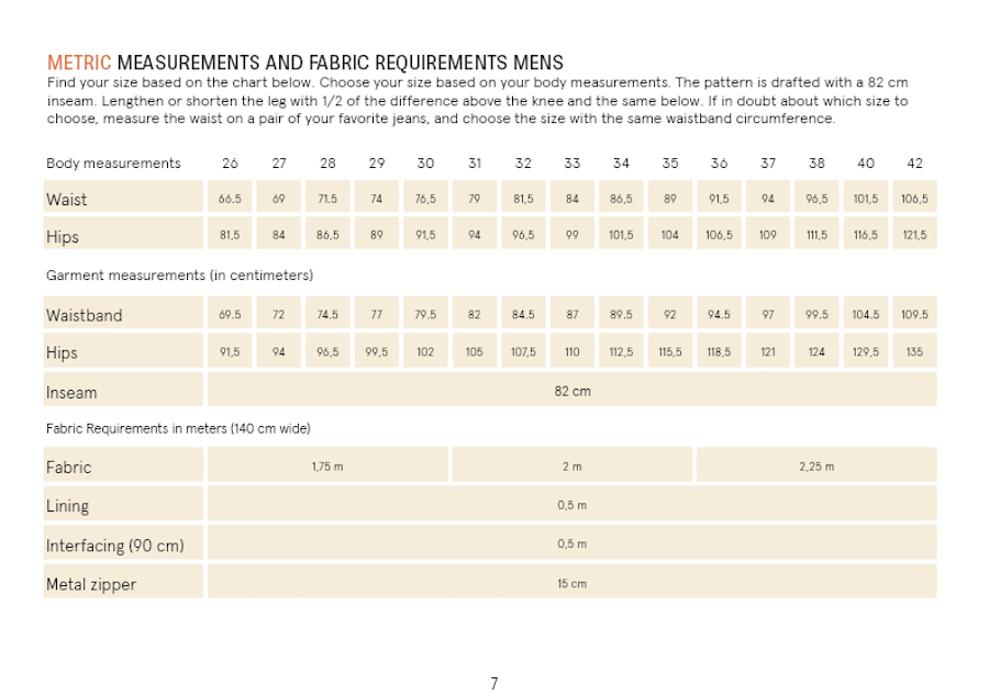 1. #About# WBM Men's jeans sewing pattern is a pair of classic, five-pocket jeans with a relaxed fit and boot-cut legs. The jeans have a regular waist ending at the belly button, and the waistband is cut straight. The details include a front zipper, classic curved front pockets, a coin pocket, and pointed back pockets. Complete the look with heavy topstitching, rivets, and a jeans button.