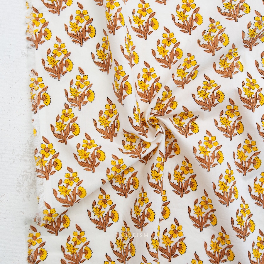 Cottage florals are available in beautiful colours on cream backgrounds for a low volume look. Printed on a slightly heavier base cloth than normal Indian block prints makes them perfectly suited to patchwork.